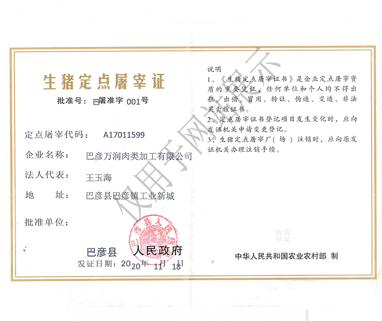 2016年公司通過(guò)了中國(guó)質(zhì)量認(rèn)證中心的質(zhì)量管理體系(ISO9001)和食品安全管理體系(ISO22000)認(rèn)證;2017年已取得國(guó)家進(jìn)出口企業(yè)認(rèn)證;是中國(guó)肉類協(xié)會(huì)會(huì)員單位,黑龍江省肉類協(xié)會(huì)副會(huì)長(zhǎng)單位;2017年,公司產(chǎn)品經(jīng)中國(guó)綠色食品發(fā)展中心審核,被認(rèn)定為綠色食品A級(jí)產(chǎn)品;被省畜牧獸醫(yī)局確定為全國(guó)生豬屠宰標(biāo)準(zhǔn)化創(chuàng)建示范企業(yè)(全國(guó)僅6家)。2018年12月,被評(píng)定為市級(jí)農(nóng)業(yè)產(chǎn)業(yè)化重點(diǎn)龍頭企業(yè)。2019年1月,被評(píng)定為省級(jí)農(nóng)業(yè)產(chǎn)業(yè)化龍頭企業(yè)。